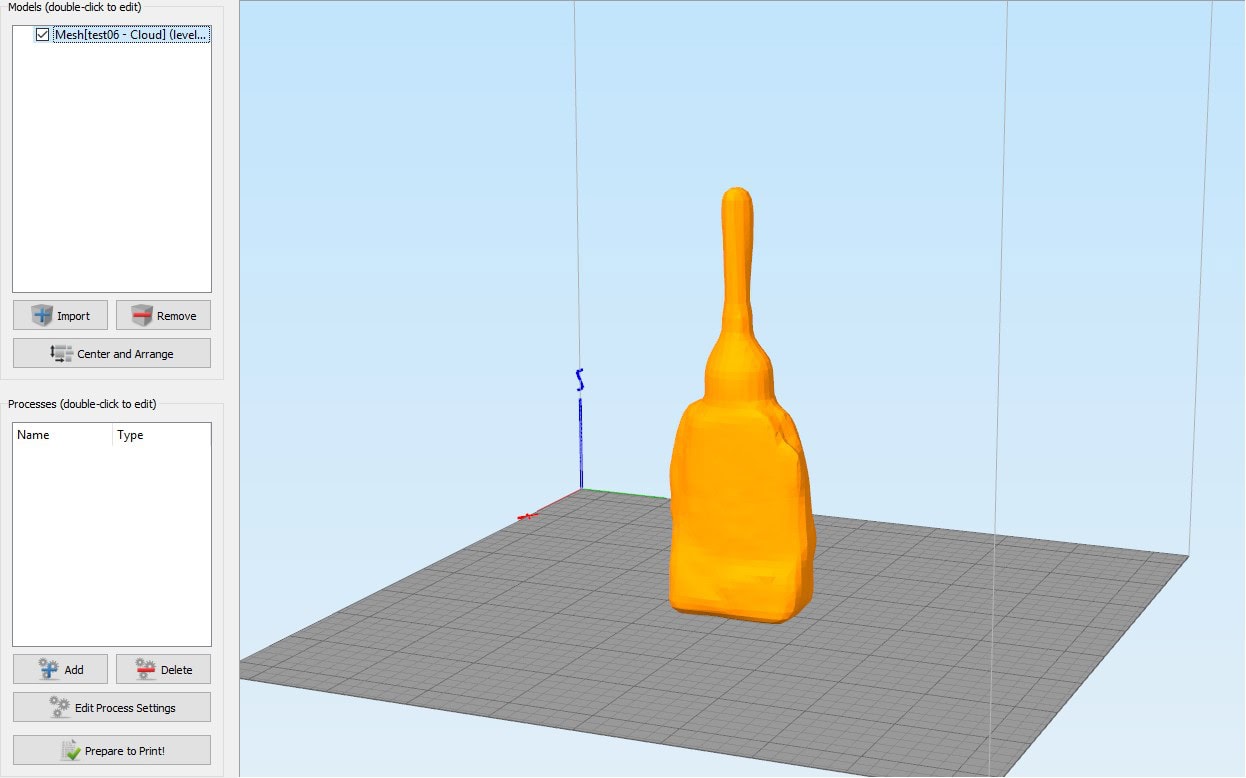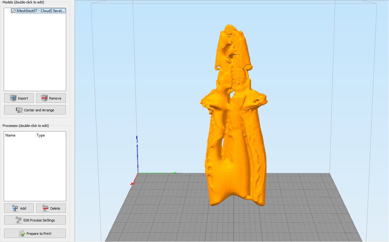 Das erstellen von druckfähigen STL Dateien aus den in Horus abgespeicherten Punktwolken benötigt einiges an Studieren und Rumprobieren in der von für Neulinge meiner Meinung völlig unverständlichen Funktions- und Parameterflut von Meshlab oder Cloud Compare. Da war die iSense App die das komplett alles auf Knopfdruck gemacht hat von der Einfachheit her ein wahres Vergnügen dagegen.