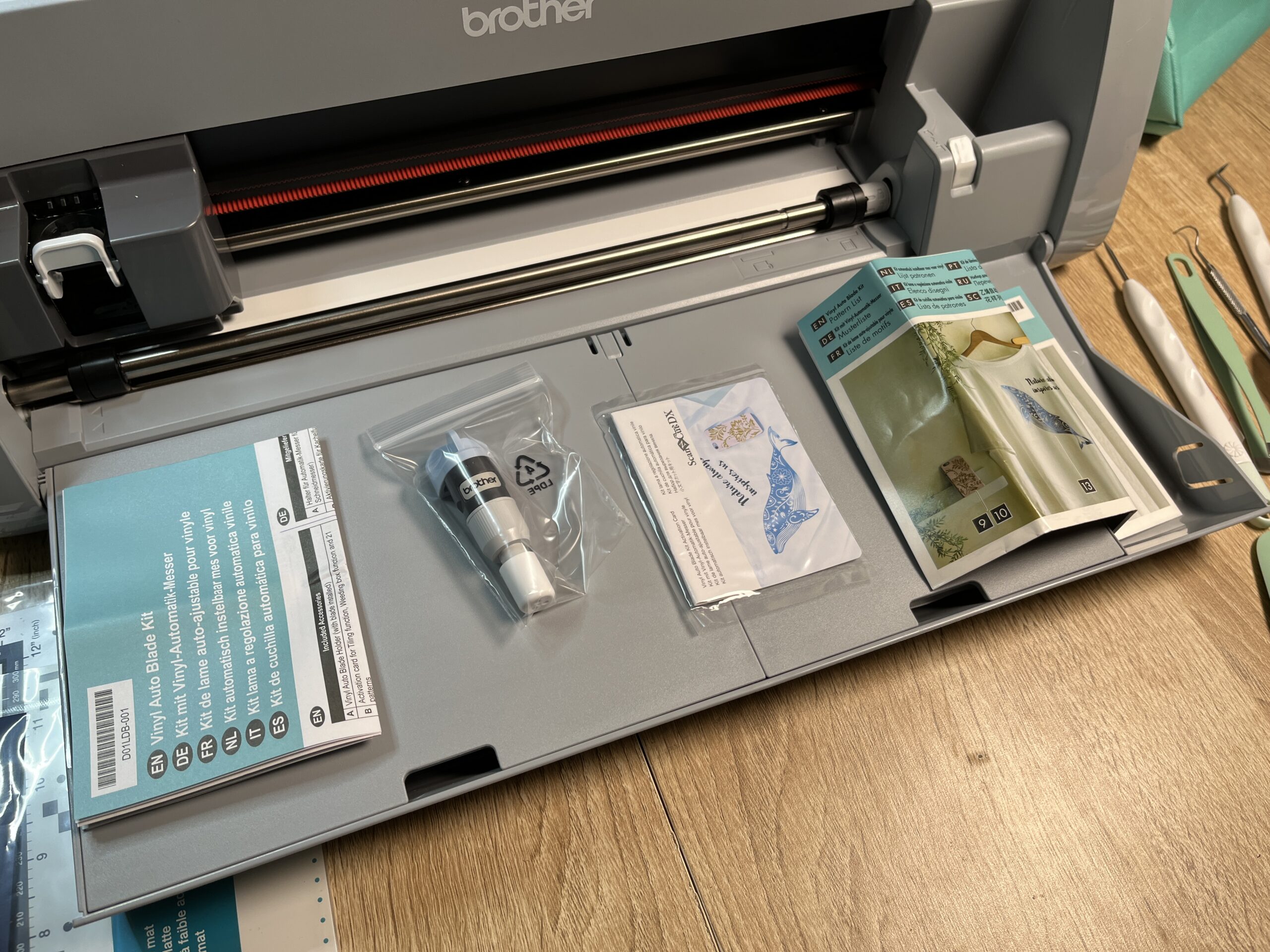 Das Zubehörangebot in der ScanNCut DX Modellreihe ist umfangreich, von diversen Messern (Roll, Tief, Manuelles-Messer), über Stift- & Rollenhalter, zu Strasssteine Kits, Stempel Kit, Lochmuster-Nadel, Prägewerkzeug wird recht viel angeboten, getoppt wird das glaub nur noch von CriCut, aber die Zubehörpreise von Brother sind eher teuer.