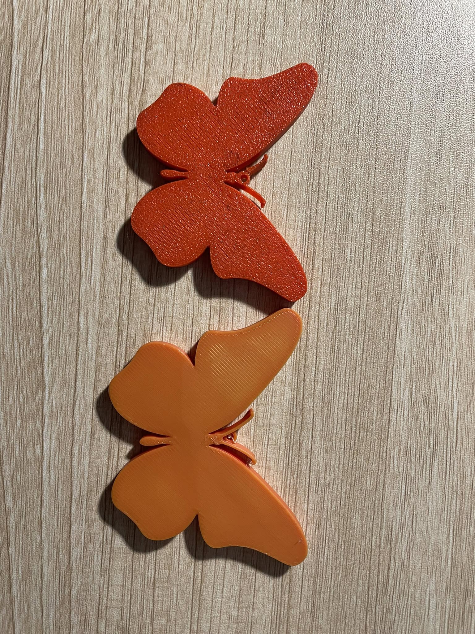Für diesen Langzeittest habe ich mehrere PLA-Schmetterlinge gedruckt, jeweils zur Hälfte mit dichtol behandelt (siehe Tauchmethode). Sie hängen nun draußen dauerhaft in der Sonne. Eine vollständige Bewertung wird erst nach Wochen oder Monaten möglich sein – aber die Ausgangslage ist klar: Der Vergleich wird zeigen, ob der Schutz tatsächlich das Ausbleichen verlangsamt. Ich habe extra Farben genommen, von denen ich weiß, dass sie die UV Belastung weniger mögen und schneller reagieren.