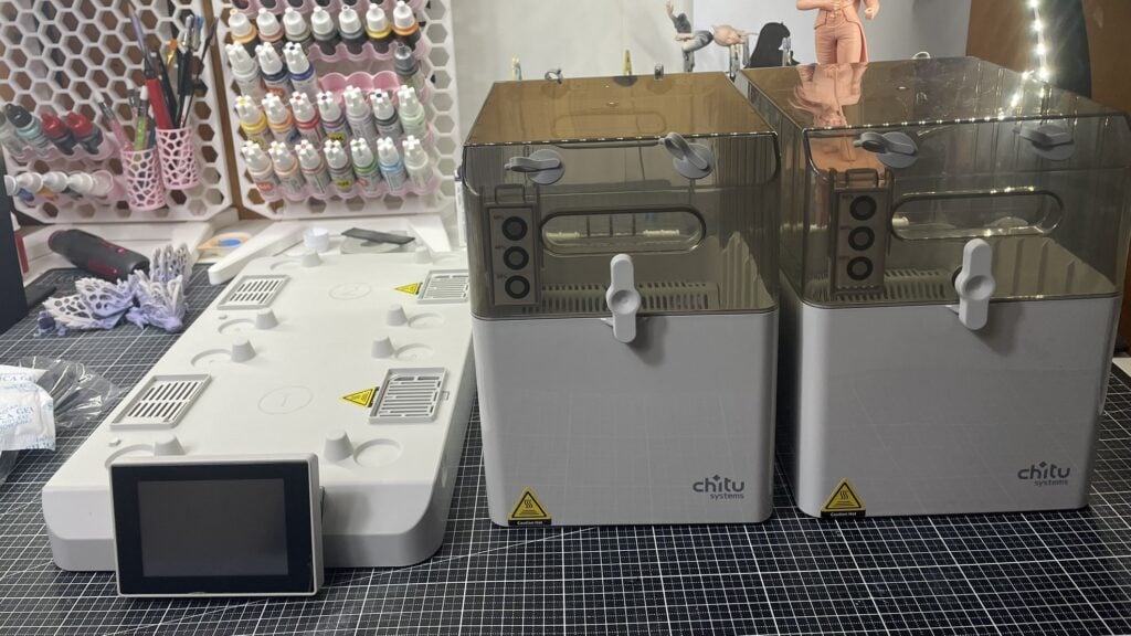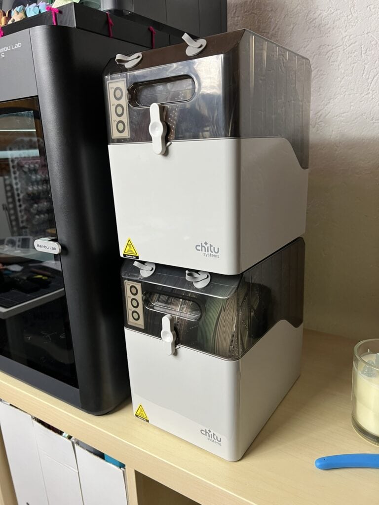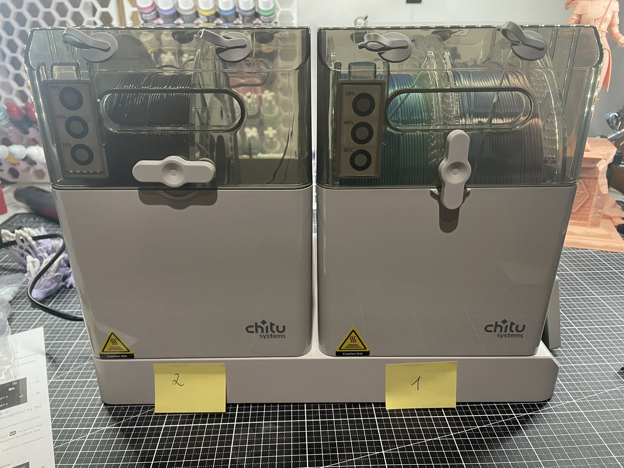 Genau hier punktet die Chitu Systems Box: Sie besteht aus zwei separaten Boxen, von denen man eine auch einfach abschalten kann, wenn man nur eine Rolle trocknen möchte. Das spart ordentlich Strom.