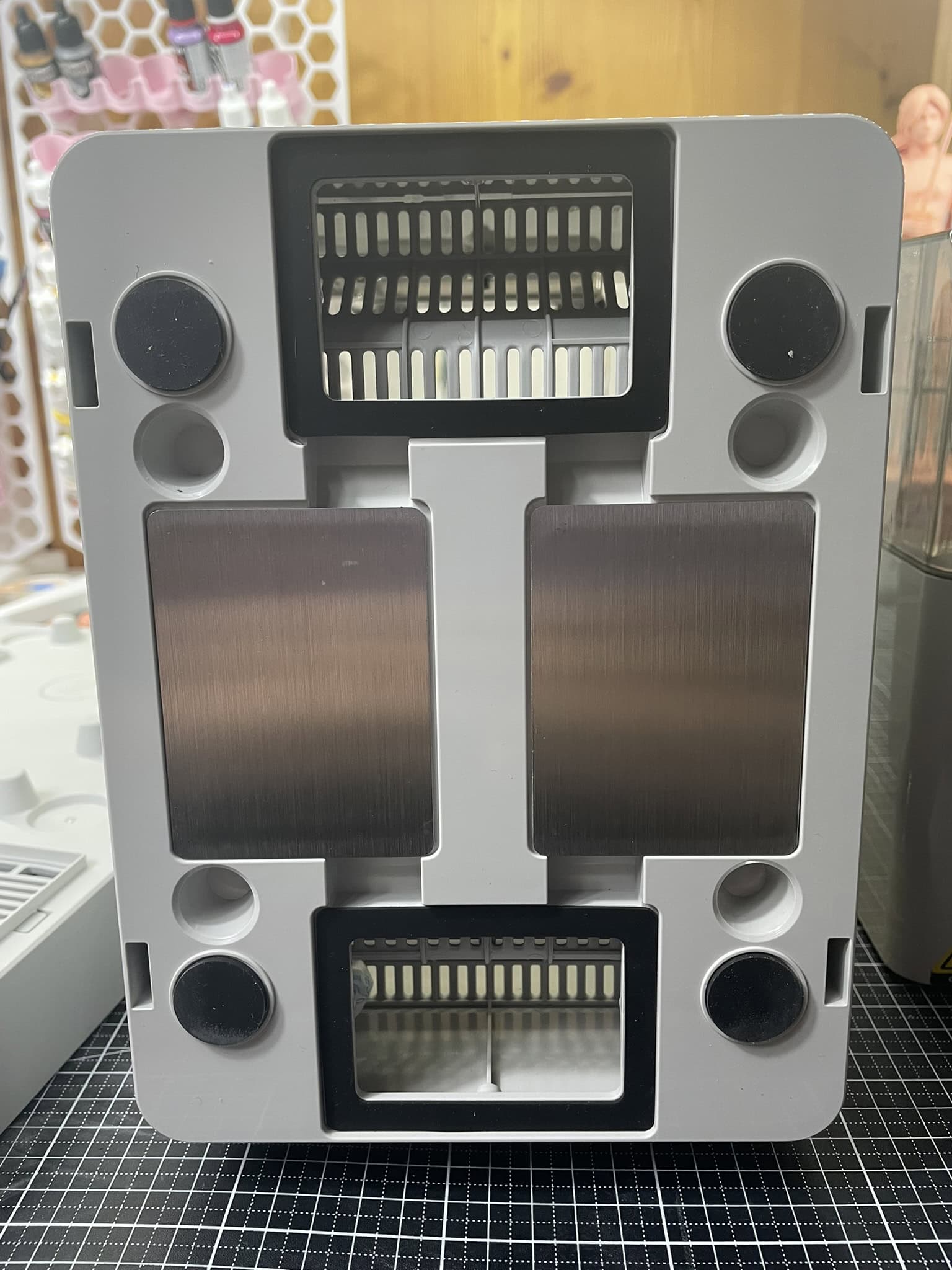 Nach dem Trocknen lassen sich die Lüftungsschlitze mit magnetischen Abdeckungen verschließen, und auch die Luft- und Filamentauslässe oben können komplett versiegelt werden.
