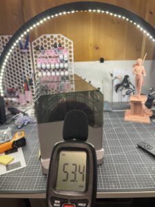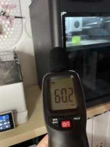 Die Lautstärke des Geräts ist – je nach Umgebung – durchaus gut wahrnehmbar. Mit etwa 58 dB im Normalbetrieb klingt das Ganze in etwa wie ein laufender Drucker. Wer empfindlich auf Hintergrundgeräusche reagiert, könnte das als störend empfinden. Allerdings ist das nicht viel schlimmer als meine anderen Geräte.