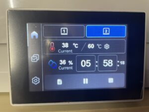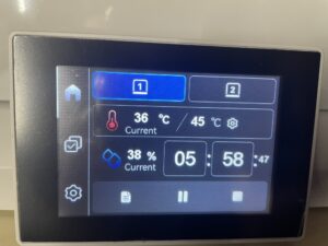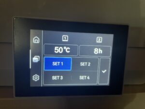 Der integrierte Sleep-Modus schaltet das Display nach wenigen Minuten Inaktivität aus. Keine blinkenden Anzeigen, keine Restbeleuchtung, es wirkt fast, als wäre das Gerät per Hauptschalter ausgeschaltet. Umso überraschender war es, als der E1 plötzlich von allein wieder ansprang. Das war der Moment in dem ich erkannte: der E1 kann sogar „intelligent“ trocknen.