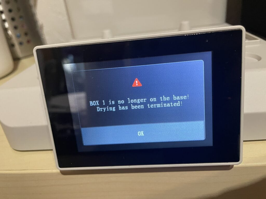 Übrigens: Steht eine Box nicht korrekt auf ihrem Platz, wird der entsprechende Slot im Menü automatisch ausgegraut. Ein versehentliches Starten der Trocknung ist dadurch ausgeschlossen. Diese Funktion lässt sich im Menü zwar deaktivieren, ich persönlich finde sie aber äußerst praktisch.