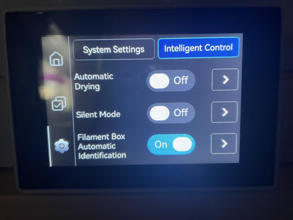 Neben dem manuellen Trocknen gibt es auch einen Automatikmodus. Ist dieser aktiviert, startet der Trocknungsvorgang automatisch neu, sobald die Luftfeuchtigkeit in der Box über 40 % steigt. Die Box nutzt dabei die zuletzt gewählten Einstellungen – praktisch für alle, die ihre Filamente länger lagern und vielleicht auch gezielt aus der Box drucken möchten.