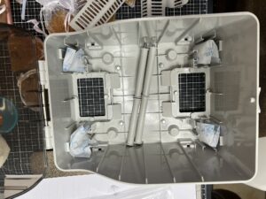Optisch erinnert mich die Trockenbox selbst an meinen alten Trockner von Sovol. Nur jetzt viel hochwertiger. Hier haben wir zwei separate Filamentboxen, mit kugelgelagerten Führungsrollen (2 je Filamentrolle, 4 pro Box) die je 1 kg Filament aufnehmen können. Und ja, auch Jayos 1,1-kg-Rollen passen problemlos rein.