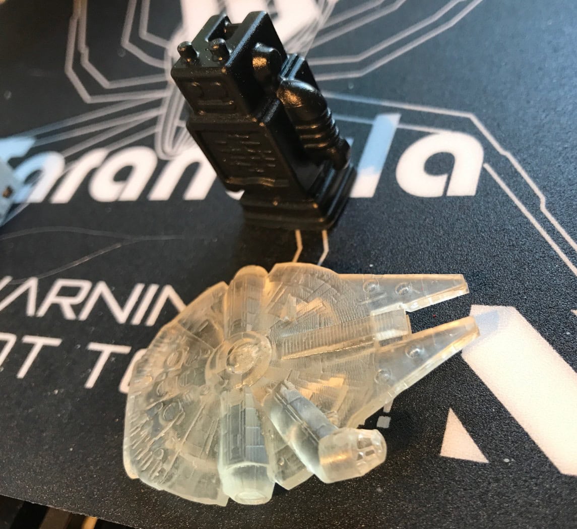 Mini Falcon (gepfuscht hinten klebt das Raft unzertrennlich) + der Ultibot (1:1), beide 0,05mm Layer