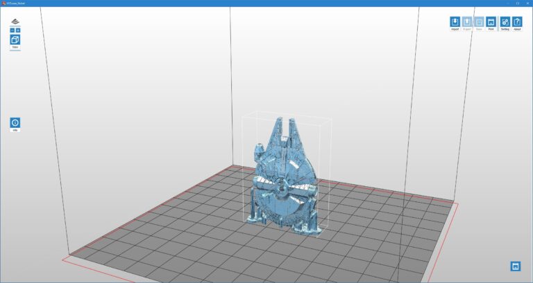 Wesentlich schwerwiegender ist allerdings die Tatsache, dass man nur die XYZ Noble Software benutzen kann und nichts anderes. Die XYZ Software für den Noble ist.. sehr bescheiden. Bei jedem Start wird man erst mal mit Werbung zugepflastert, die man wegklicken muss. Ok, nervig, aber egal. Man solle sich mit seinem XYZ Benutzerkonto anmelden, jo, gerne. Aber leider vergisst die Software ständig das Login, so dass man sich immer wieder neu einloggen muss (es kann auch sein, dass es daran liegt, dass ich immer 2 PCs im Wechsel benutze). Auch nervig. Die XYZ Software ist enorm sperrig. Und als Software für einen SLA Drucker, bei dem es ungemein wichtig ist, dass man weiß, wie viel Fläche pro einzelnem Layer zu drucken ist, ist das Fehlen einer Layer-Vorschau schon richtig übel. Jeder Slicer da draußen hat heute eine Layer-Vorschau. XYZ hat das nicht und genau die wäre für SLA wichtig gewesen.