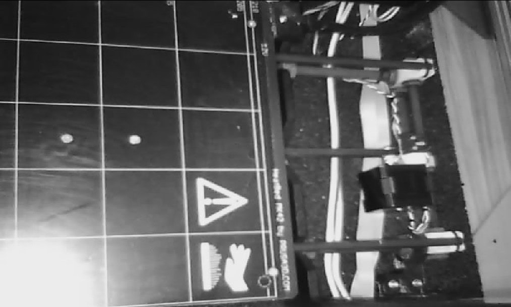 Das is nun der Blickwinkel der Kamera auf das Bett des Prusa MK2 – leider isses dunkel inzwischen