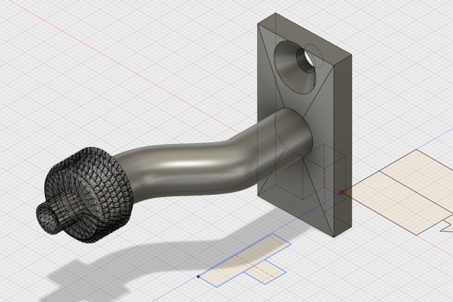 Das einzige, was ich in der Zeit hinbekommen habe war dieser Kamerahalter hier – erstellt, oder besser zusammengepfuscht in Fusion360, das es ja für uns Hobbybastler gratis gibt (und nachdem 123Design anscheinend eingestellt werden soll vielleicht kein Fehler war sich näher mit zu Beschäftigen)
