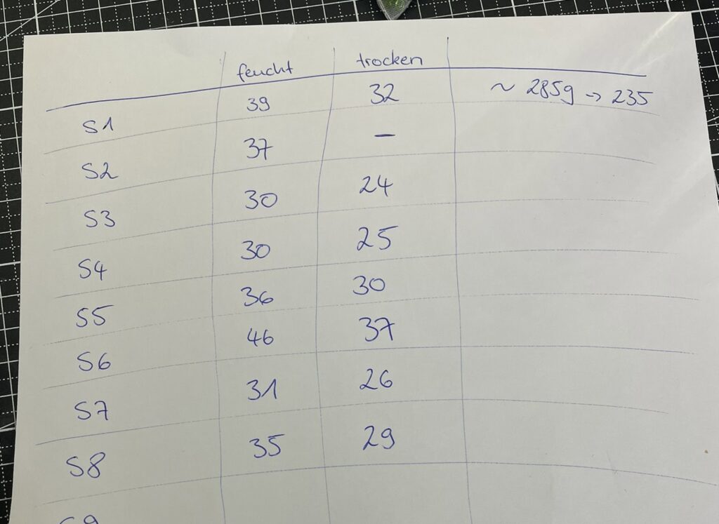 Das Ergebnis hat mich ehrlich überrascht. Ich hatte nicht mit so einer hohen Menge gerechnet. Der Wasseranteil liegt bei etwa 17 bis 18 Prozent des Eigengewichts.