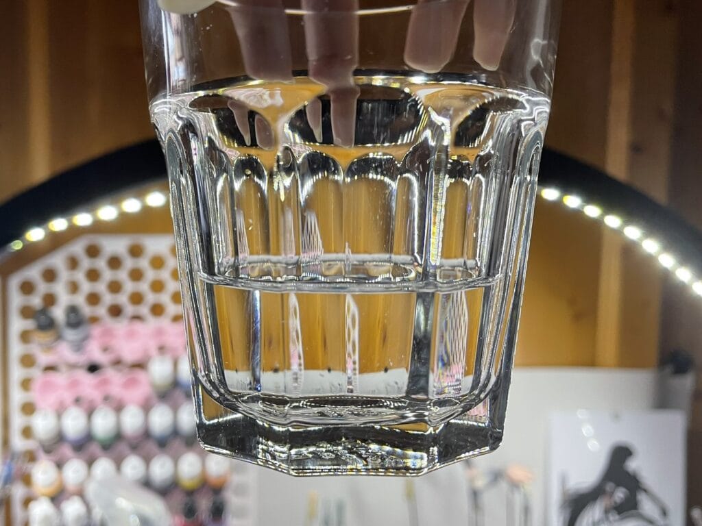 Zum besseren Vergleich habe ich diese Wassermenge einmal in ein IKEA-Trinkglas gefüllt. Dabei habe ich nicht das Volumen, sondern das Gewicht des Wassers gemessen.