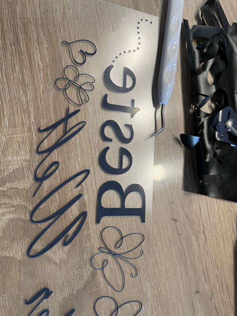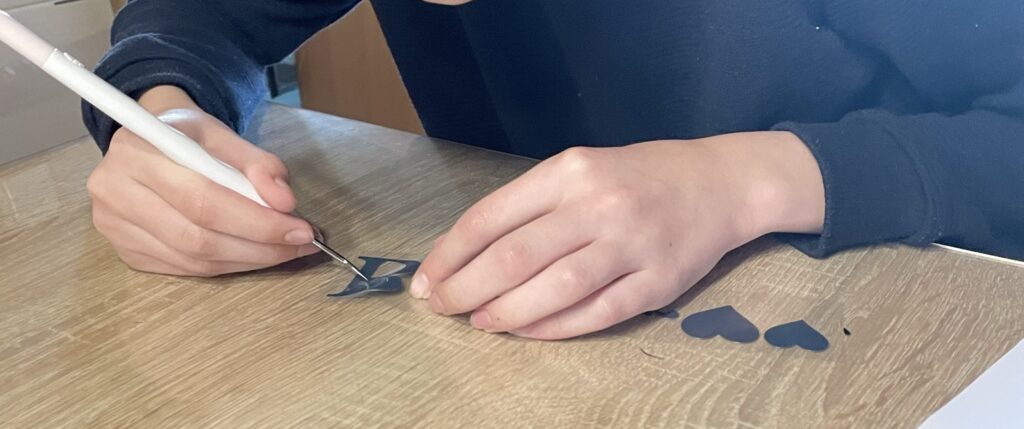 Nach dem Plotten beginnt das „Reinigen“. Alles, was nicht zum Motiv gehört, muss entfernt werden. Dafür gibt es spezielles Werkzeug, das zudem günstig zu haben ist. Eine kleine Auswahl verlinke ich euch am Ende.
