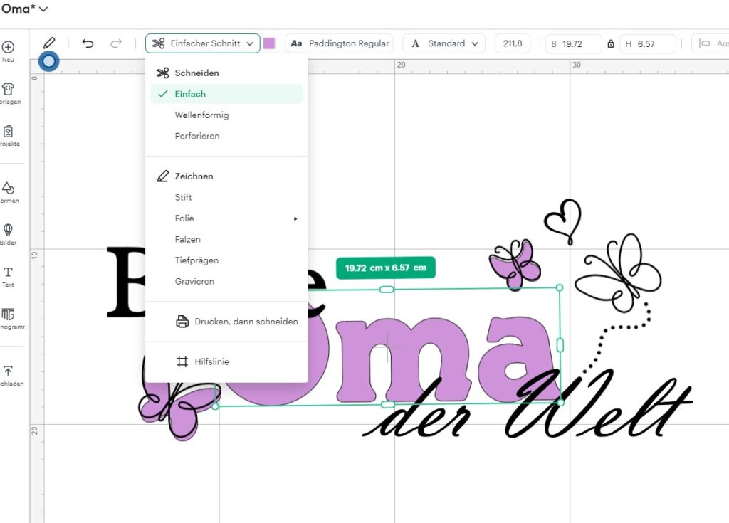 Ich selbst nutze momentan einen Cricut Maker, daher stammen alle folgenden Screenshots direkt aus deren Design Space. Das gute für euch: die Cricut Software ist in etwa die, die am wenigsten bietet. Nutzt ihr einen anderen Plotter, wird es also leichter, denn verschiedene sehr umständliche Wege der Bearbeitung werden nutzerfreundlicher gelöst.