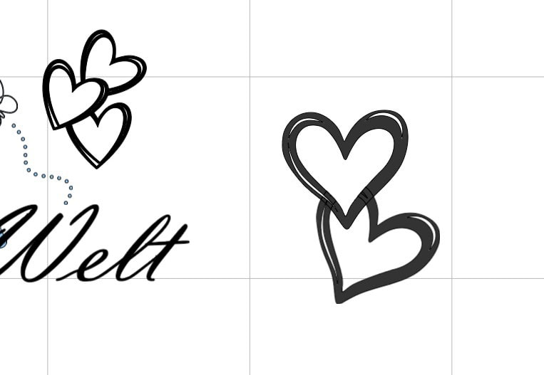 Dazu kommen noch ein paar hübsche Bilder. Merkt euch den Suchbegriff „Doodle“ in diesem Zusammenhang. Englische Begriffe bringen euch hier fast immer schneller ans Ziel. Suchen wir also nach hübschen Herzen, suchen wir einfach mal nach „Heart SVG Doodle“ und schon habt ihr die tollsten Herzchen. Das gleiche beispielsweise bei Schmetterlingen (Butterfly). Packt ihr hierbei noch den Begriff „Outline“ dazu, erhaltet ihr hübsche verspielte Schmetterlinge die nur aus einer Randlinie bestehen. Das klappt natürlich bei allen anderen Sachen auch. Diese Outline Doodle Objekte sehen beim plotten immer besonders schön aus. Sowas erstelle ich auch selbst für Laserprojekte oder ähnliches.