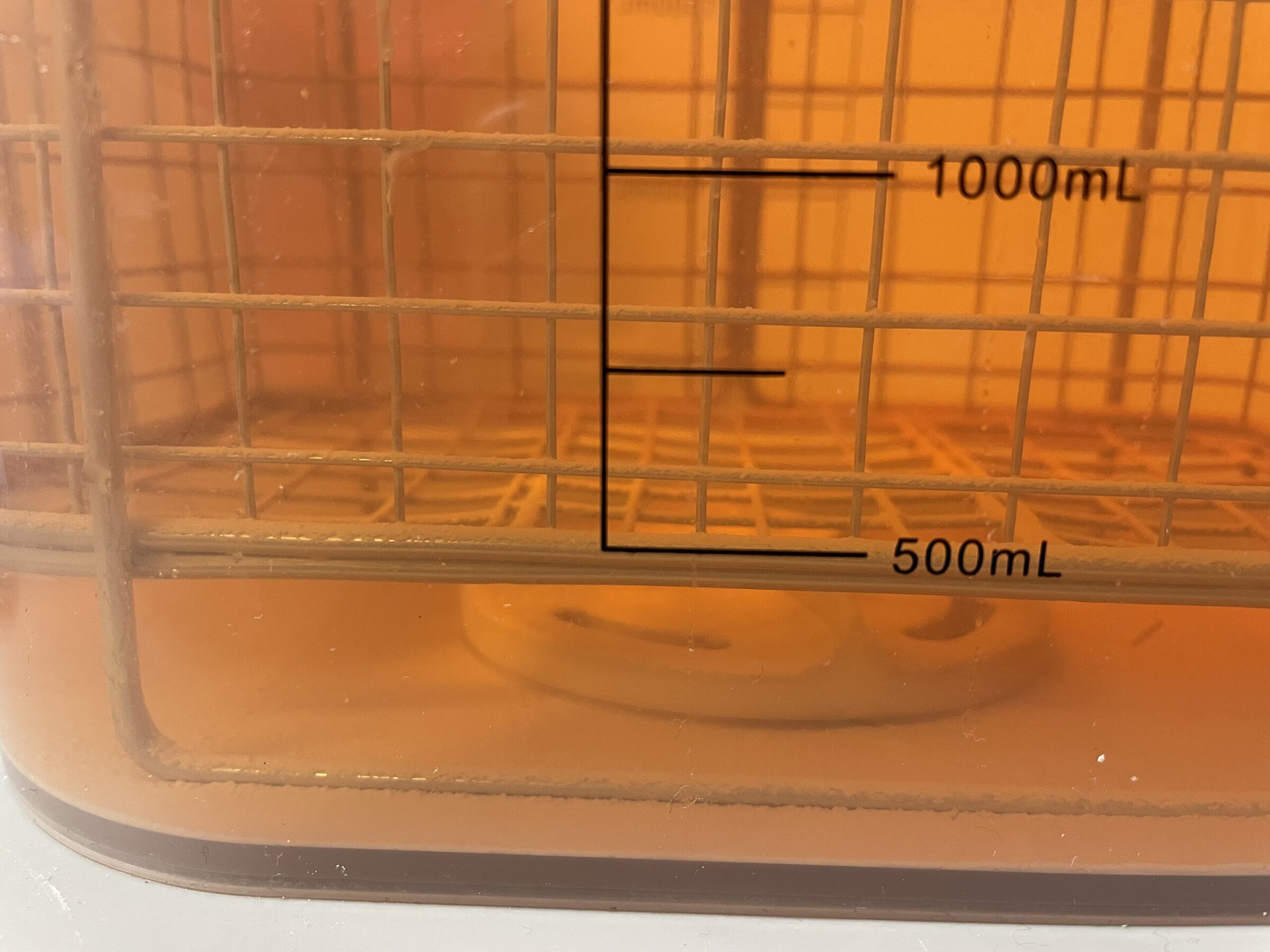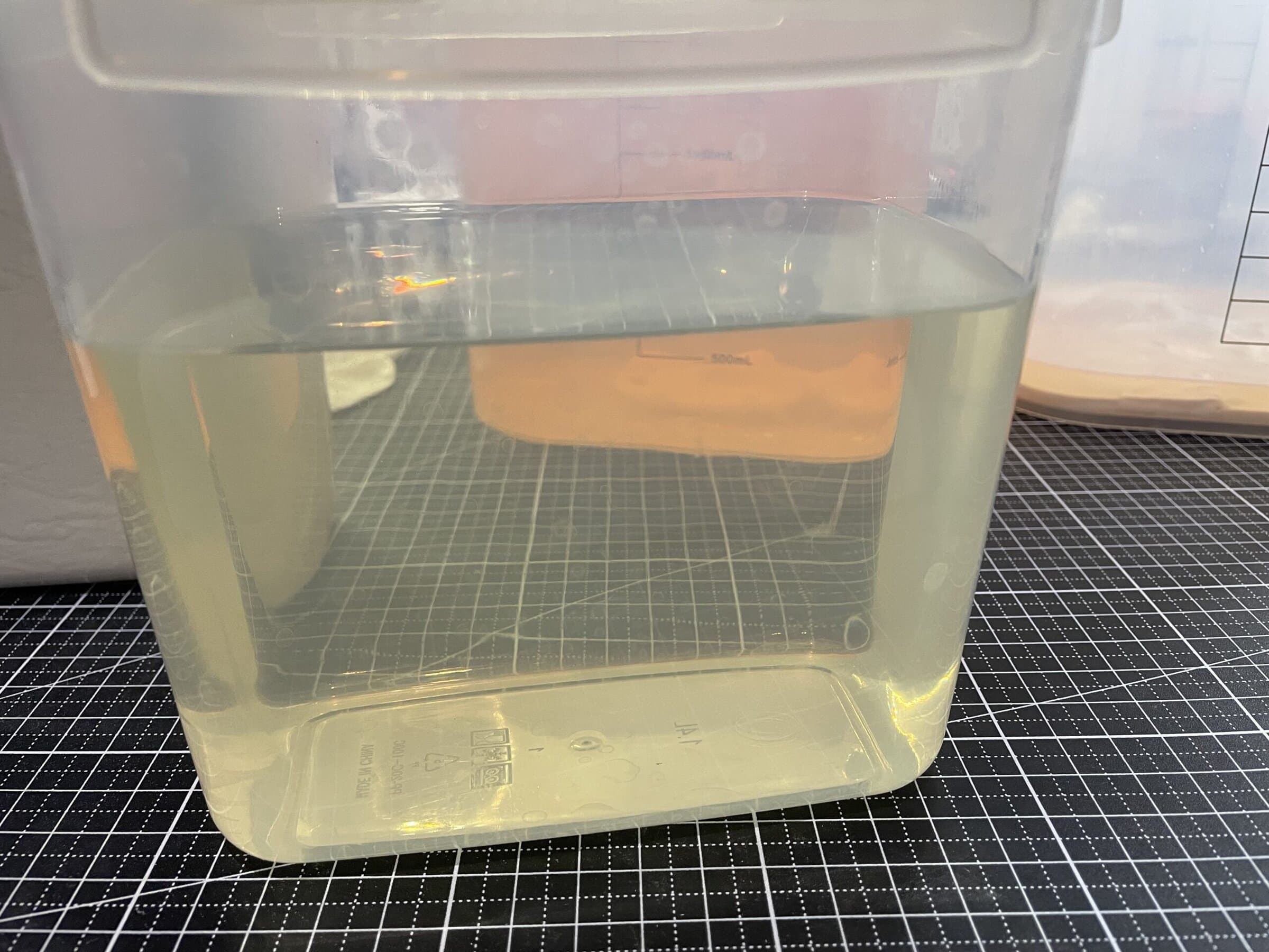 Das Wichtigste beim Reinigen von Iso ist Zeit. Je länger ihr es stehen lasst, desto besser wird das Ergebnis. Ihr selbst müsst dafür kaum aktiv etwas tun, sondern einfach nur geduldig sein. Lasst den Wascheimer einfach 2–3 Tage stehen, ohne ihn zu bewegen. Hier zeigt sich wieder der Vorteil eines zweiten Behälters: Ihr könnt ganz normal weiterdrucken, weil ihr einfach ein Ersatzgefäß habt. So fällt es automatisch leichter, geduldig zu sein.