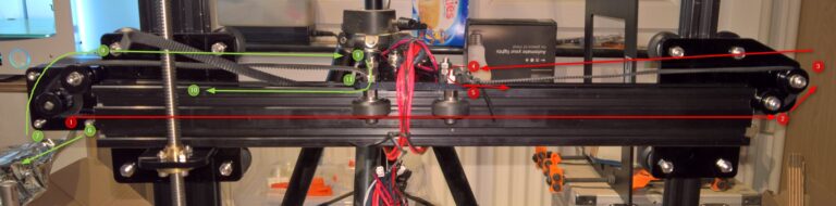 Im Grunde läuft das immer nach dem selben Schema ab: 4 Laufräder (2 mit exzentrischer Hülse, 2 mit ABS Spacer), ggfs. 1-2 Pulleys und nen Motor an eine Acrylplatte Schrauben.  Die so gebastelten Schlitten (oder eigentlich Wagen weil die haben ja immer 4 Räder?) werden dann im Anschluss auf das Profil aufgesetzt. Mehr isses gar nicht.