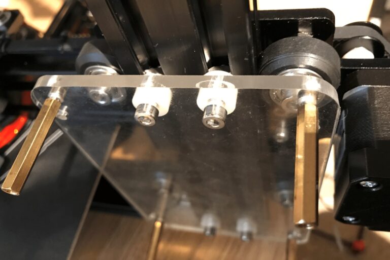 PS: .. und beim Träger fürs Heizbett hab ich die 2. Acrylplatte vergessen – darum stehen die Schrauben auch soweit raus. Das mach ich also auch gleich nochmal runter.. nur zu Übung.