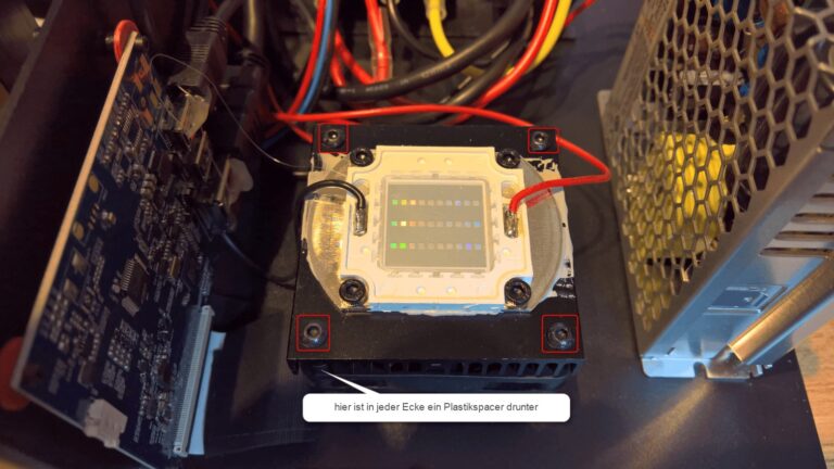 Lustigerweise hatte es mit den 4 Plastikspacern dann nicht mehr geklappt, obwohl die Sunon Lüfter gleich dick sind. Ich hab se dann halt mal weglassen, weil mir sonst der Trichter des Reflektors doch sehr stark auf die LED gedrückt hätte. War mir dann zu stramm. Mal sehen, ob und wie sich das im Druck auswirkt. Ich hab se auf jeden Fall mal beiseite gelegt, falls ich se doch noch brauche..